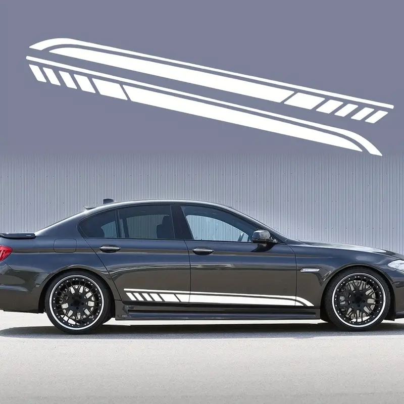 Set of 2 Reflective Side Stripes Vinyl Decal Stickers for Car Doors White
